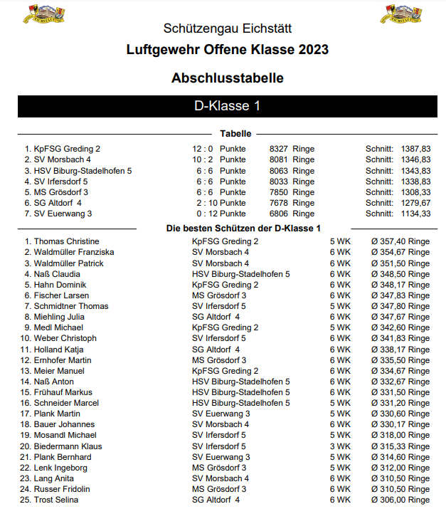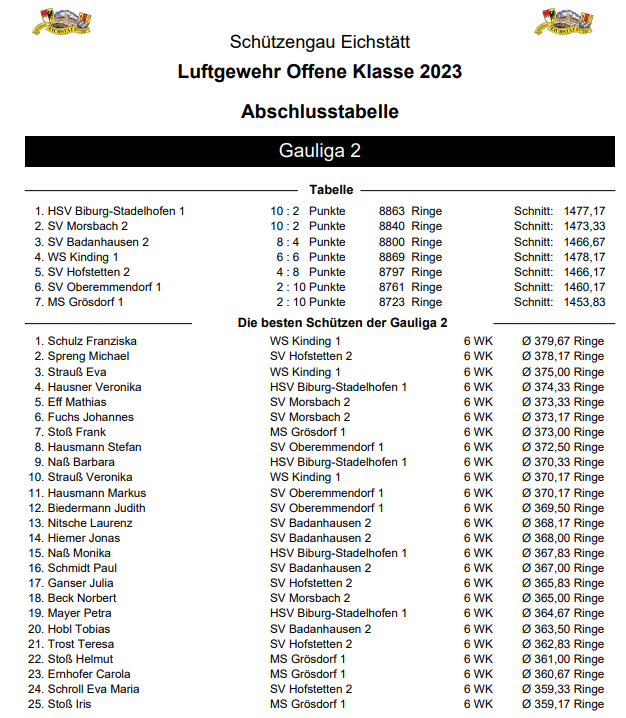 Schießergebnisse der Schützen je Wettkampf